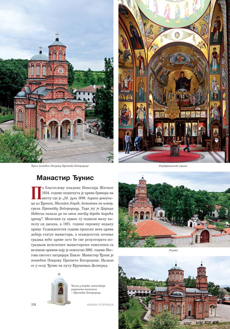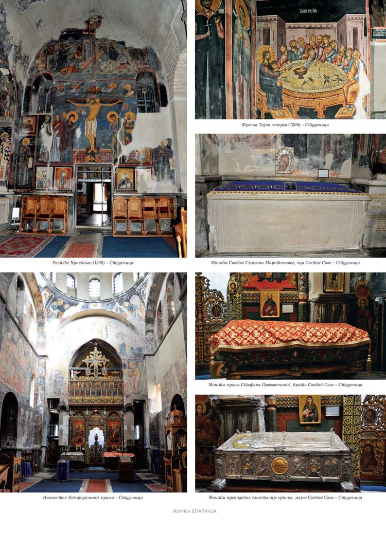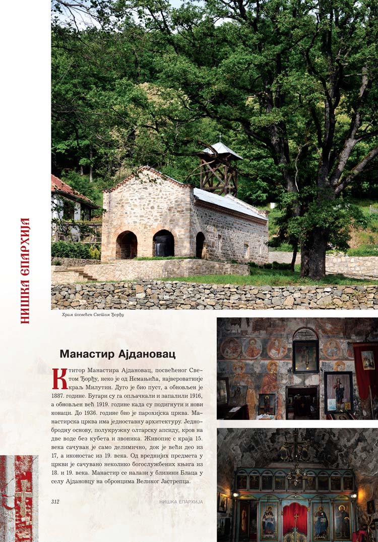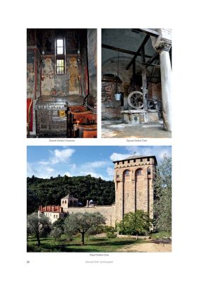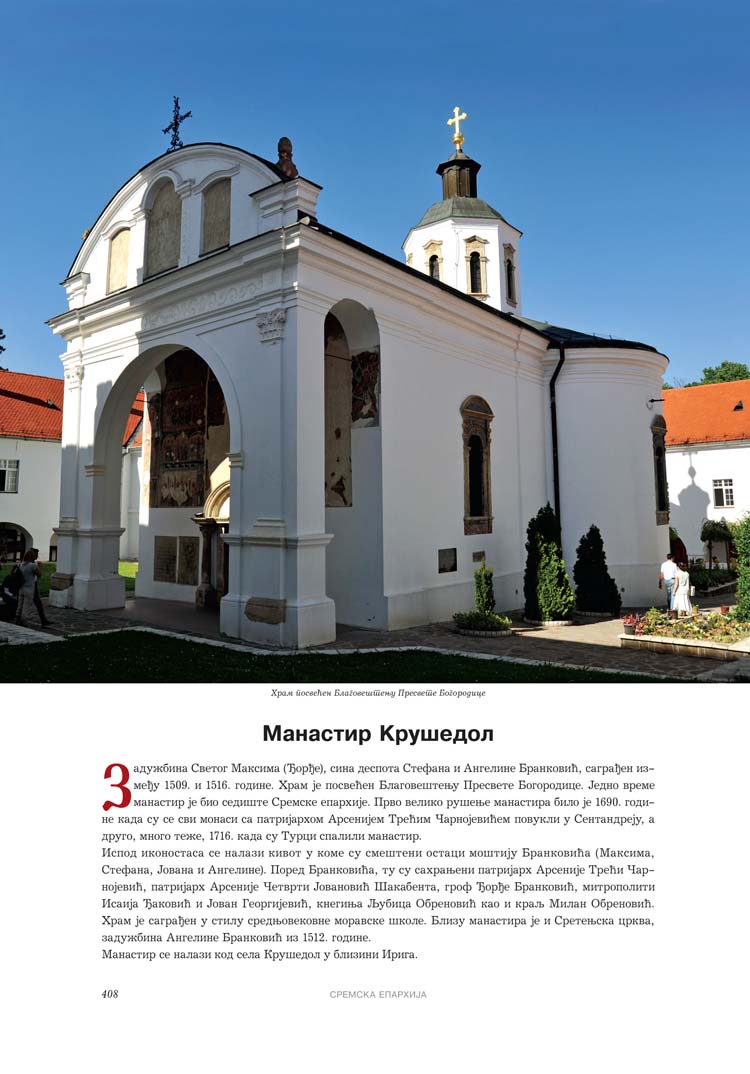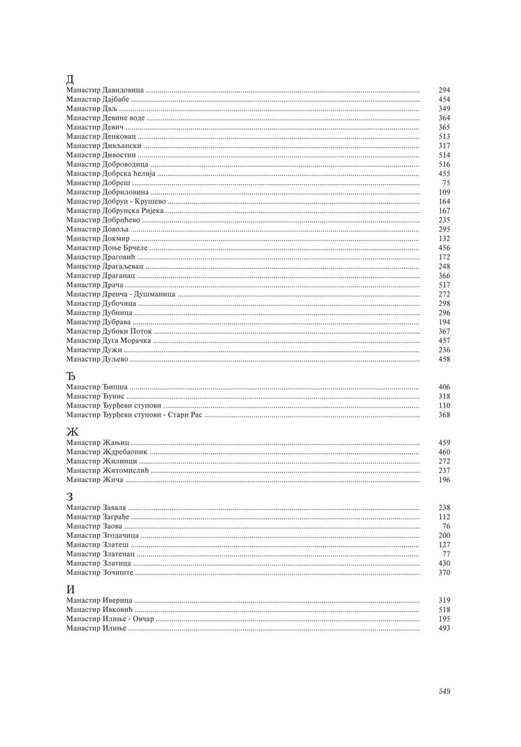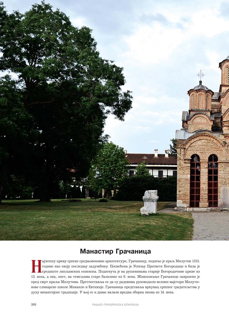Све то прате фотографије као визуелна представа, а систматизоване у једном документу и као сведок једног времена. Манастири су представљени азбучним редом по епархијама.