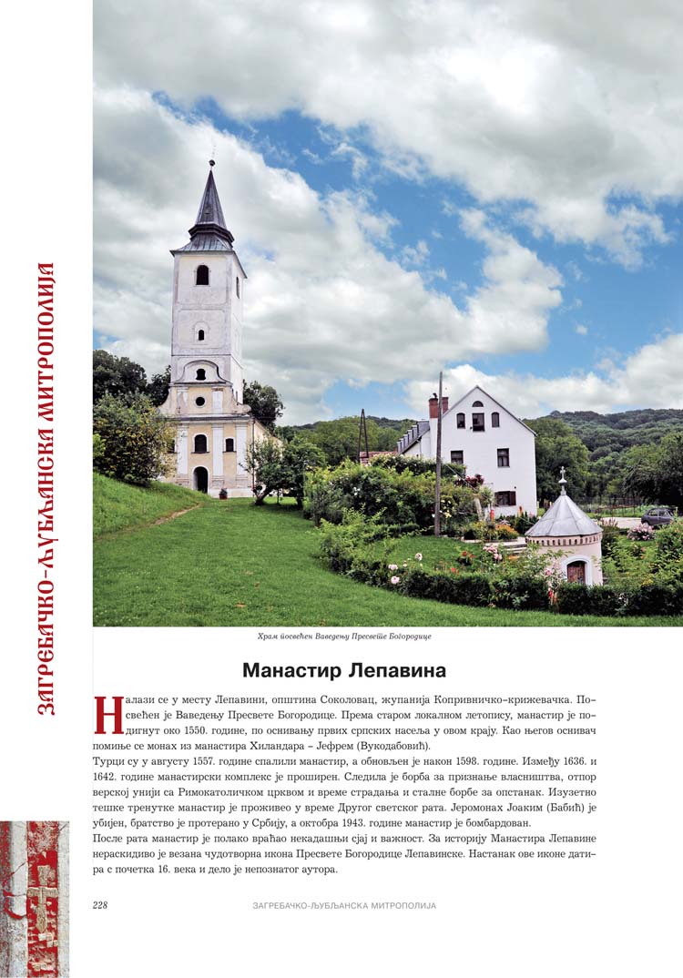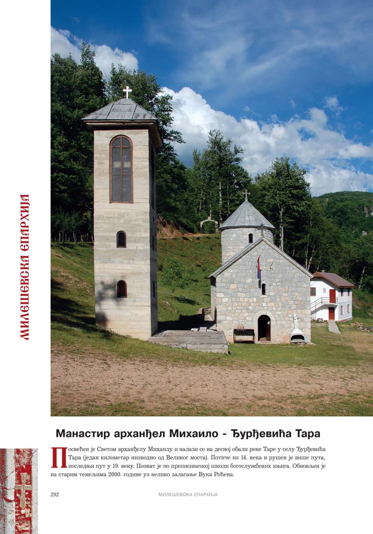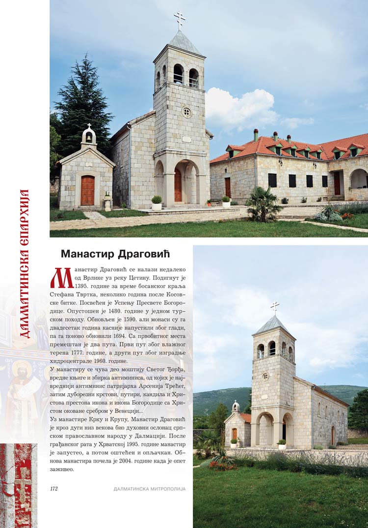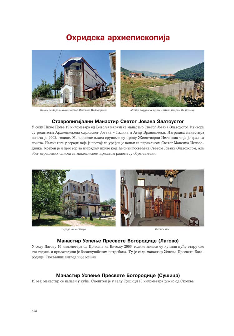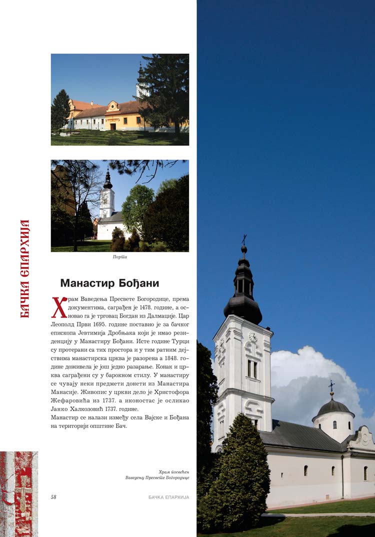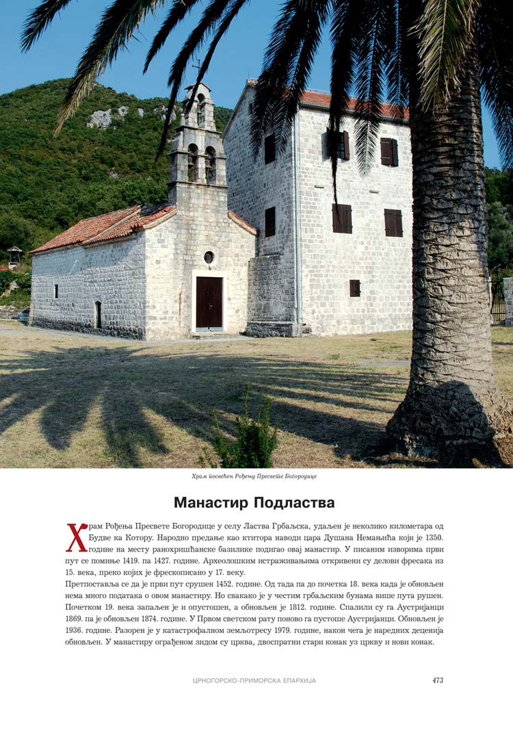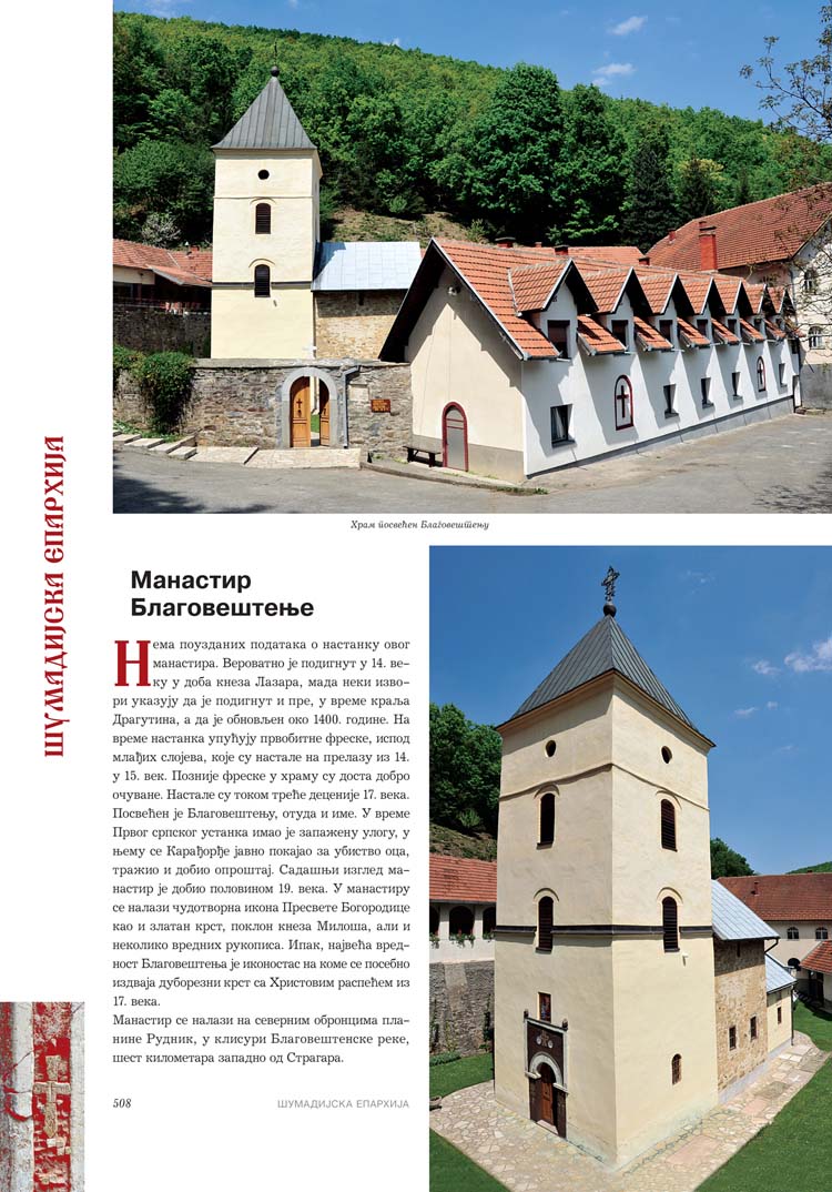 Све то прате фотографије као визуелна представа, а систматизоване у једном документу и као сведок једног времена. Манастири су представљени азбучним редом по епархијама.