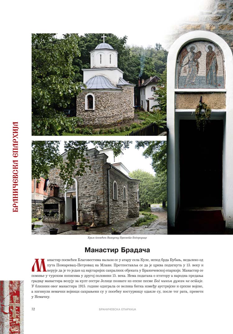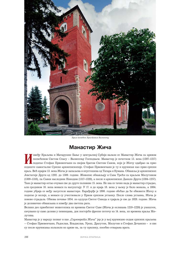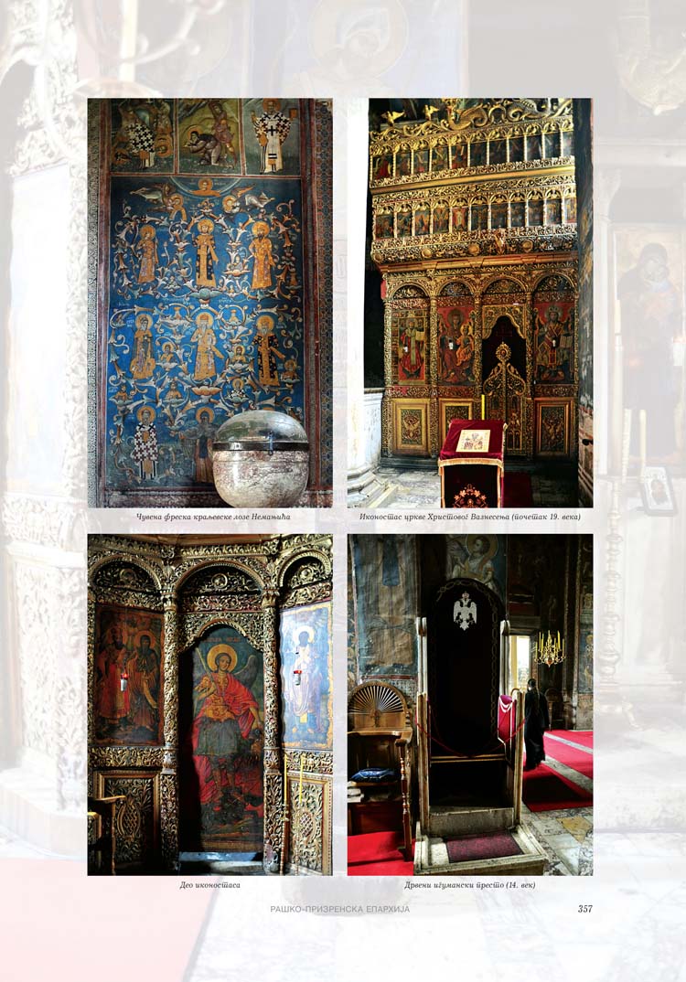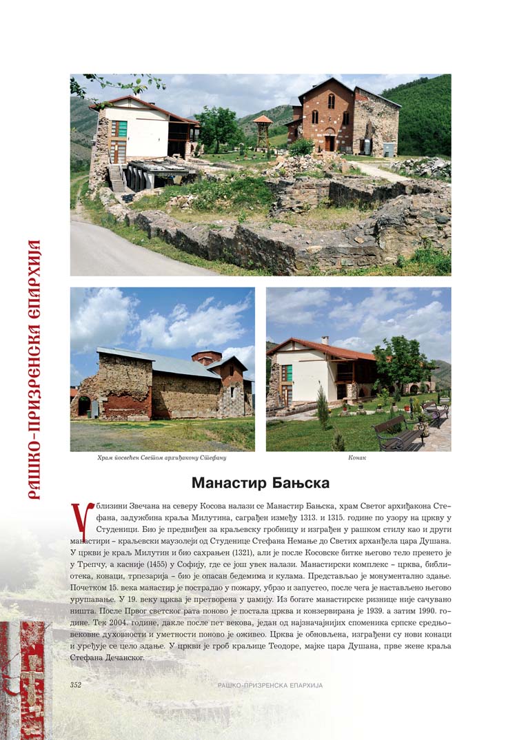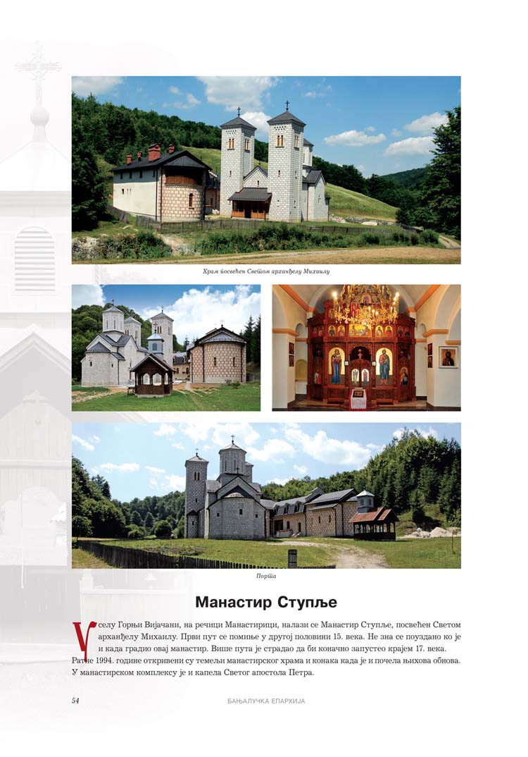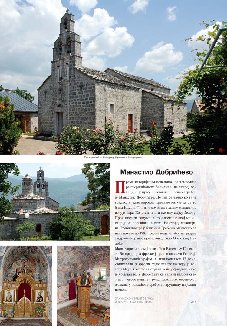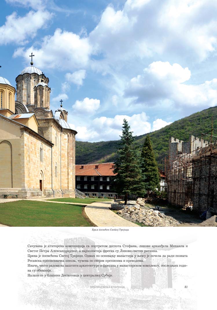 Све то прате фотографије као визуелна представа, а систматизоване у једном документу и као сведок једног времена. Манастири су представљени азбучним редом по епархијама.