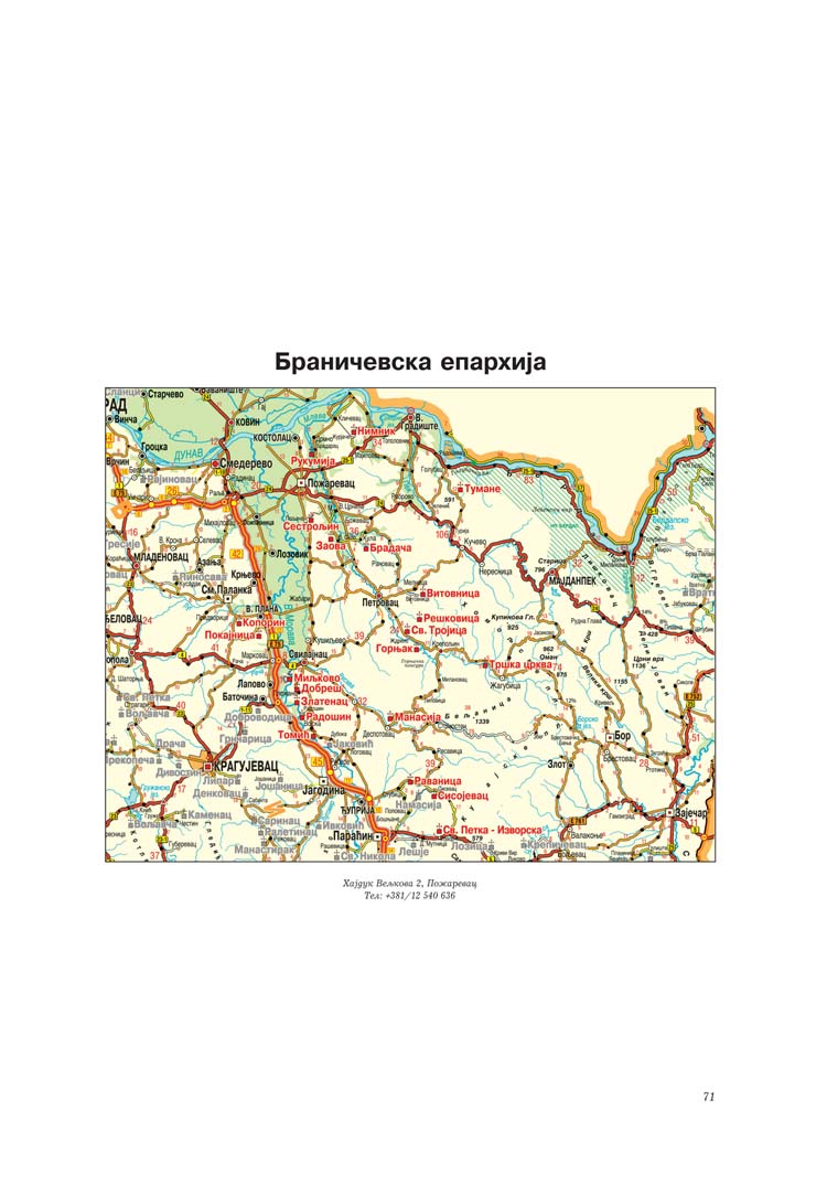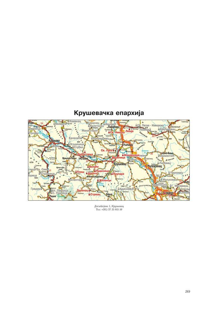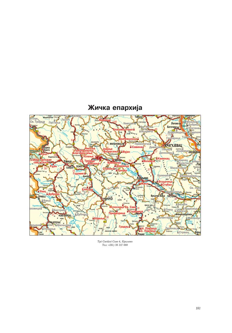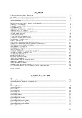 На почетку сваке епархије дата је и карта са уцртаним позицијама свих манастира, а на крају подаци о манастирима који више не постоје. Свему овоме претходи уводни текст Душана Миловановића о настанку и значају монаштва и манастира уопште.