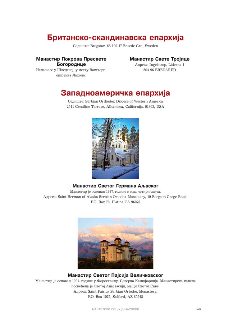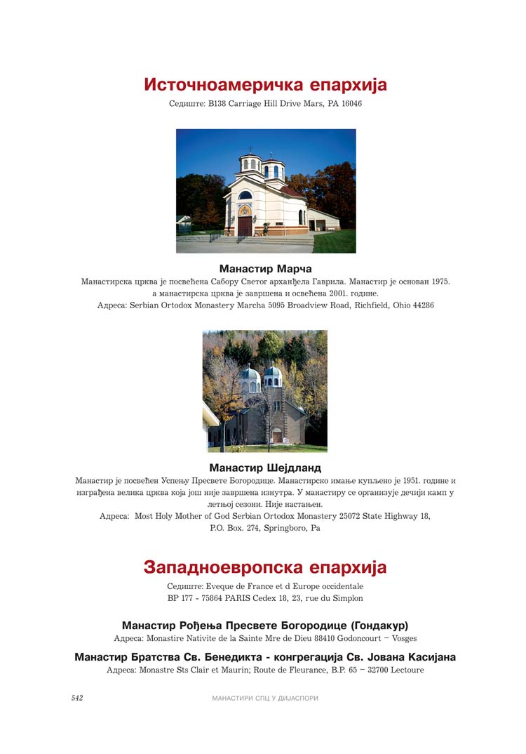 У четвртом допуњеном издању САБОРНИКА МАНАСТИРА СРПСКИХ, на 624 колорних страна, приказано је 473 српских манастира, наведени су сви српски манастири који су оскрнављени и порушени на Косову и Метохији у периоду од 1999. године па до данашњих дана, као и 213 манастира који су некада постојали.